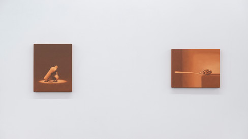 Self-Fulfillment is the artist's second solo with Seventeen, the first being Ground Truthing in 2024, similarly done in a monochrome of terracotta, mixed by Tate from natural pigment and linseed oil. As soon as I made it to the gallery, her palette was doing work: my sensory memory went to things dug up and scraped with a small brush. Familiar in its old associations, terracotta belongs to things buried or preserved. Objects mute.
