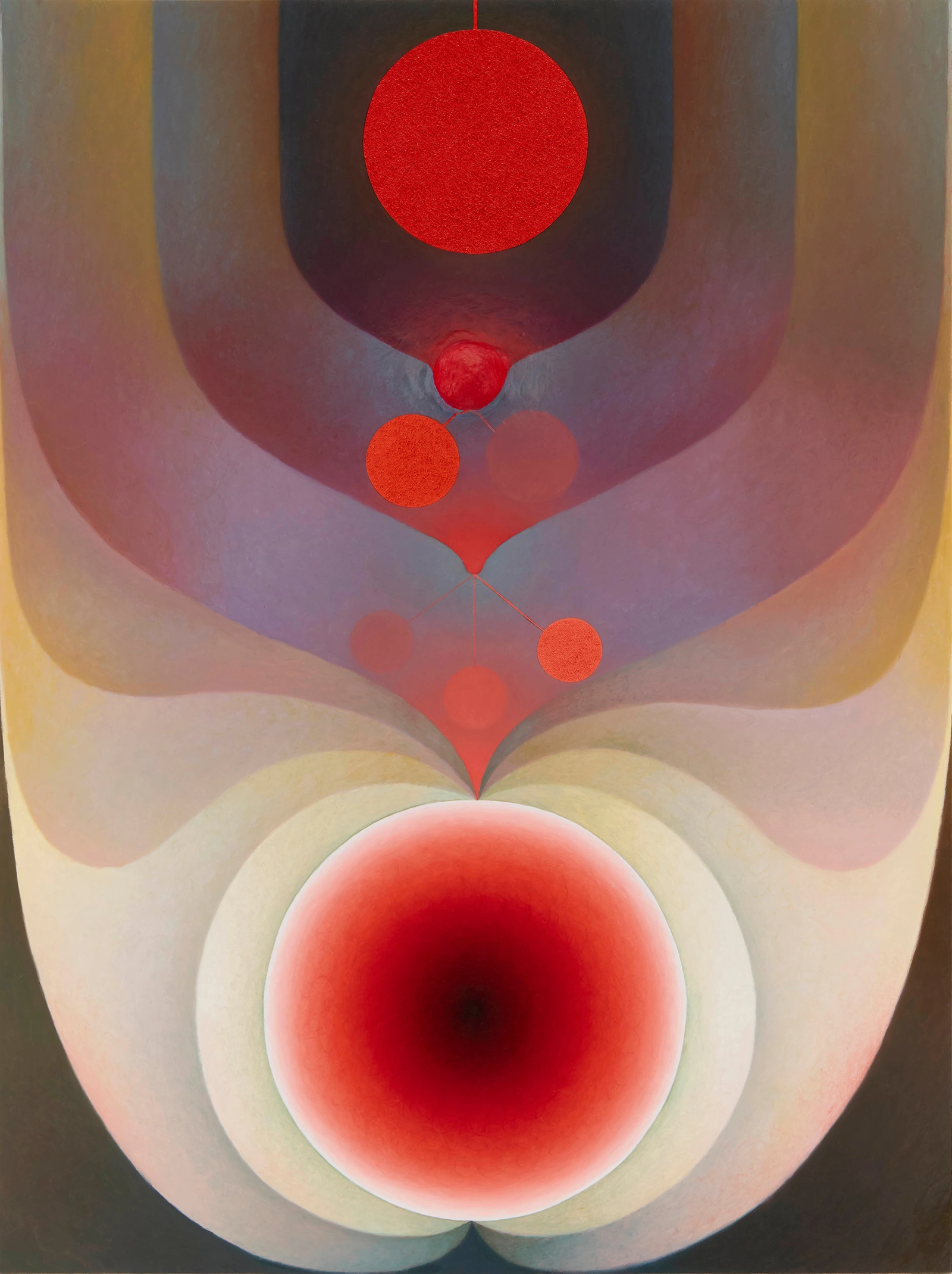 Loie Hollowell, The pit and the pendulum in yellow/red/blue, 2025
