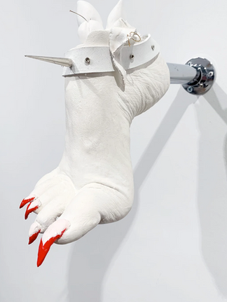 The ceremony was a welcome release from the raw emotions evoked by the exhibition. Malevolent claw-like nails cast in plaster, a singular clutched breast, fingers welded together with nails and a hand groping the right buttock, its display was a stark assault on the human body. With each sculpted gesture, Strange challenged her audience to deconstruct patriarchal ideas of identity, female desire and shame surrounding power-play. "There is an element of voyeurism in my work,” says Strange. “I'm confronting the viewer with objectified ligaments that are dislocated from the body and attached to the wall. In the same way that you would look at a garment in a shop."